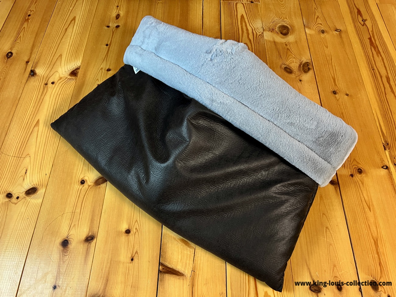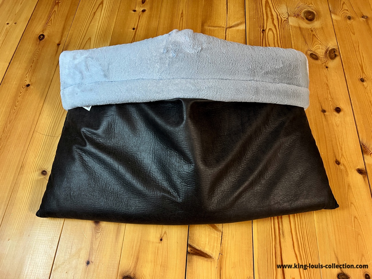 Dieser besonders dicke Kuschelsack ist ein echtes Unikat. Der hochwertige Polsterstoff* in Elefantenhautoptik in Schwarz (je nach Lichteinfall mit leicht bräunlichem Schimmer) ist ca. 4 mm stark und dadurch außergewöhnlich robust.